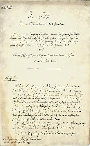 Am 8. Januar 1835 benachrichtigte dann der Regierungspräsident des