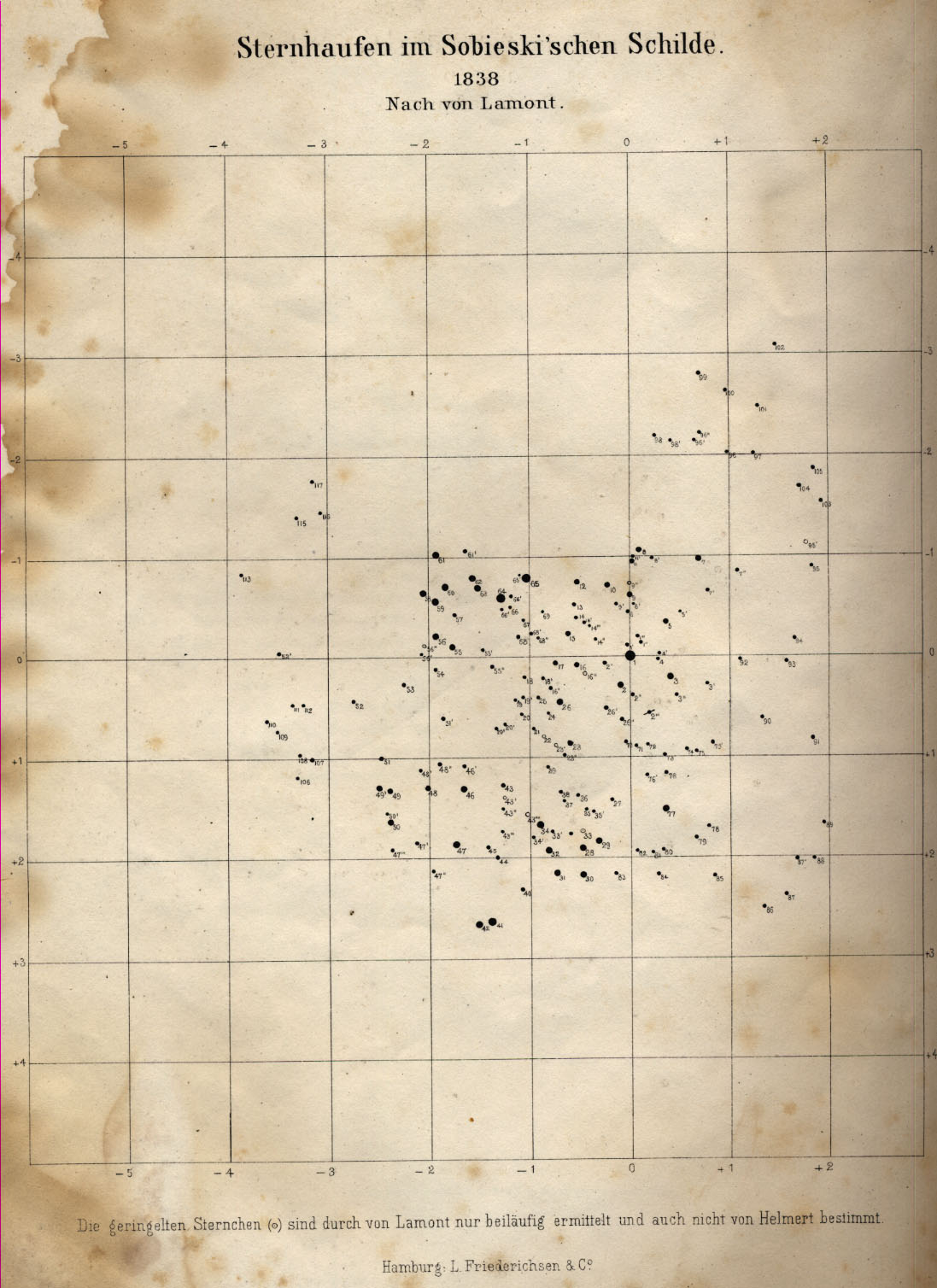 Links: Der von Lamont vermessene Sternhaufen im Sobieskischen