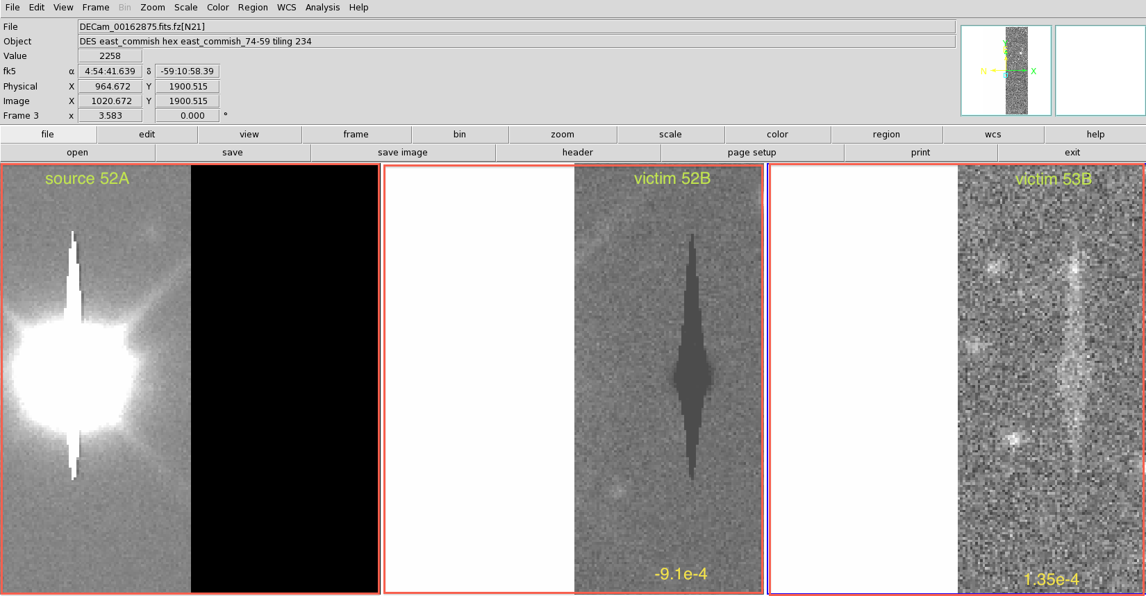 Some examples of very large inter-ccd crosstalk (including intra-ccd crosstalk for source for comparison):