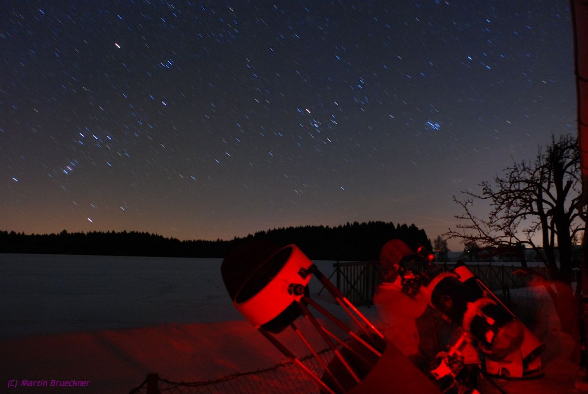 | Neben Bismarck und Ben ist auch das 66mm Apo Wilhelmine im Einsatz. | Am folgenden Abend ist auch der 18" Dobson im Einsatz. Aufnahme von Martin Brückner. |