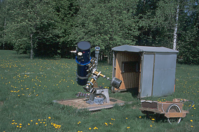 | Neben einem soliden Fußboden ist auch die Adapterplatte bereits auf dem Sockel montiert. | Fernrohr auf den Betonsockel und es kann losgespechtelt werden! |