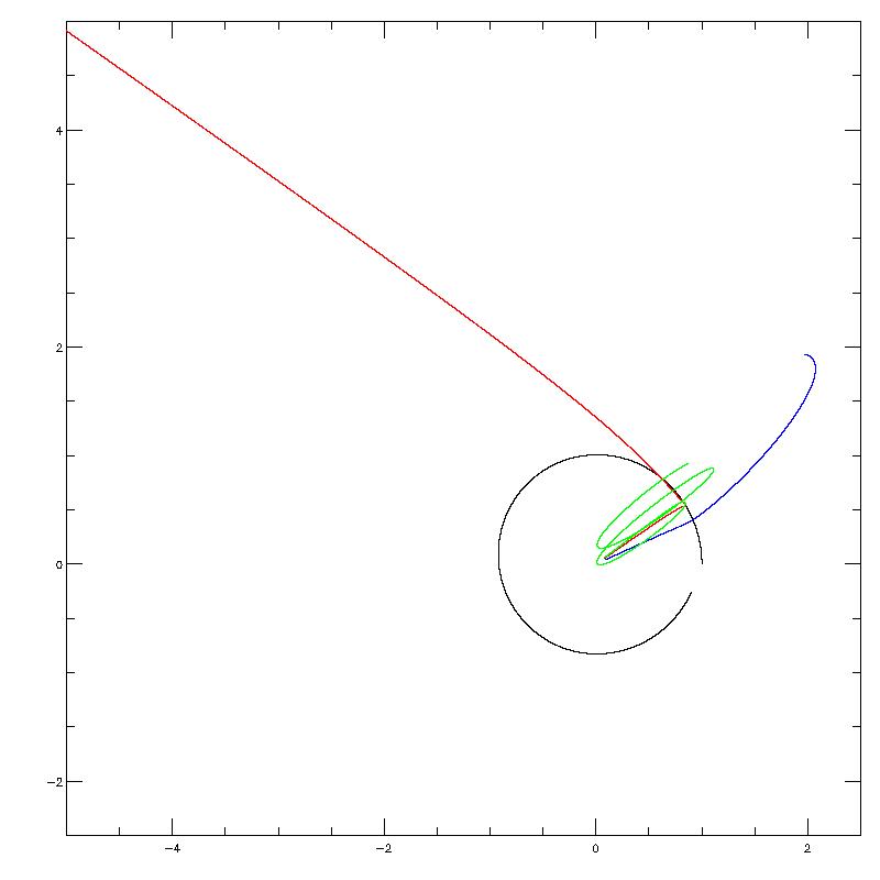 -  Include a gravitational softening to your calculation. and repeat the previous 3 body system.
