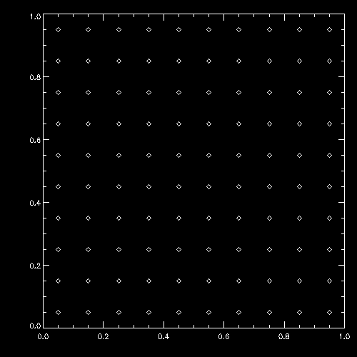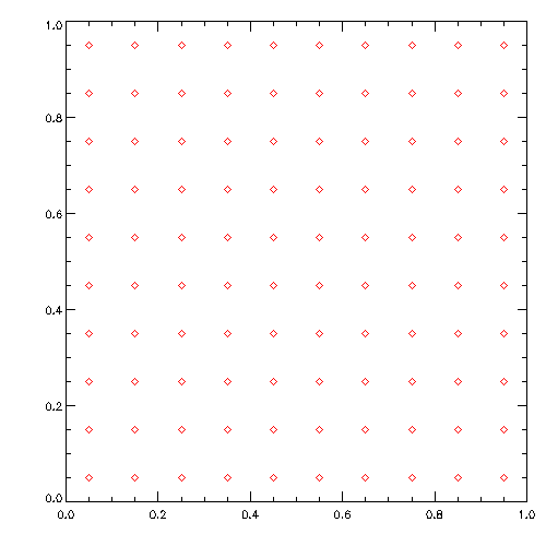 Set up a cube of 10×10×10 particles in a region with the coordinates [0...1].