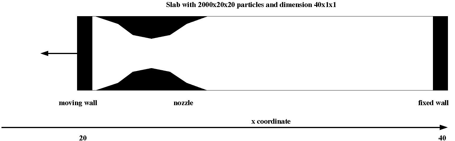 - Create a slab with uniform distribution of particles (say, 2000×20×20).